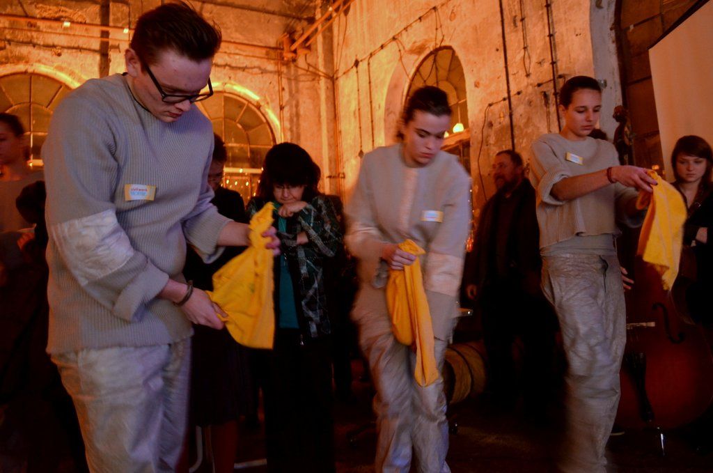 Auftritt des Jugendtheaters D.A.S. Stellwerk beim 9. Geburtstag der Bürgerstiftung Weimar. Zum Thema "Spuren in die Zukunft legen" wurden von den jungen Protagonisten "Steine" schauspielerisch zu einem Weg geformt.