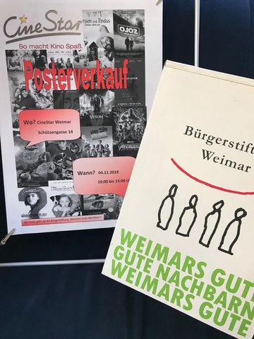 Am 4. November verkauft das Weimarer CineStar Filmplakate zu Gunsten unseres Seniorenbegleiter-Angebots Weimars Gute Nachbarn. In der Zeit von 10.00 bis 15.00 Uhr haben Cineasten die Möglichkeit, Poster aus dem Archiv des Kinos zu erwerben. Die Einnahmen des jährlich stattfindenden Verkaufs werden an ein gemeinnütziges Projekt gespendet.