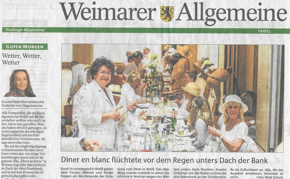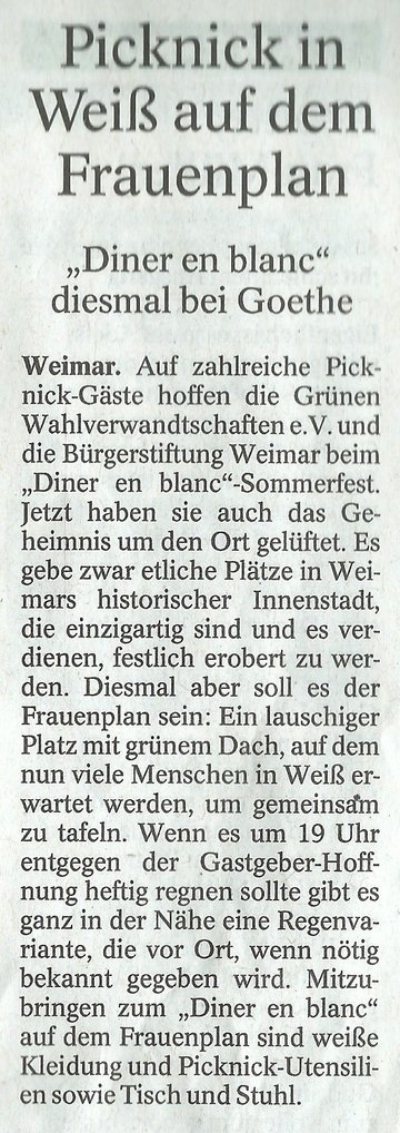Die Bürgerstiftung Weimar und der Verein Grüne Wahlverwandtschaften bedanken sich für die Bereitstellung der Notenbankräume und bei allen Dinierenden für den netten Abend.