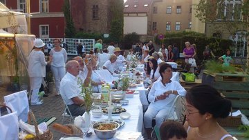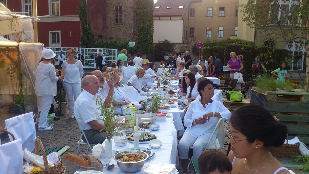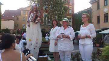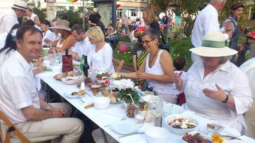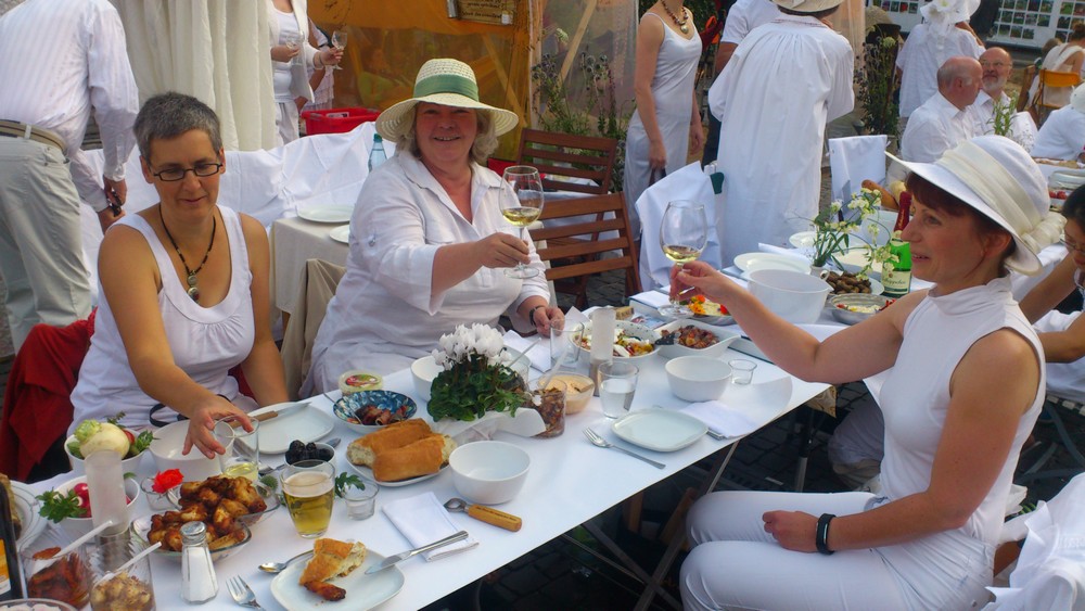 Festlich tafelten die diesjährigen Gäste des Diner blanc inmitten einer tollen floralen Kulisse auf dem Rollplatz bei bestem Wetter.