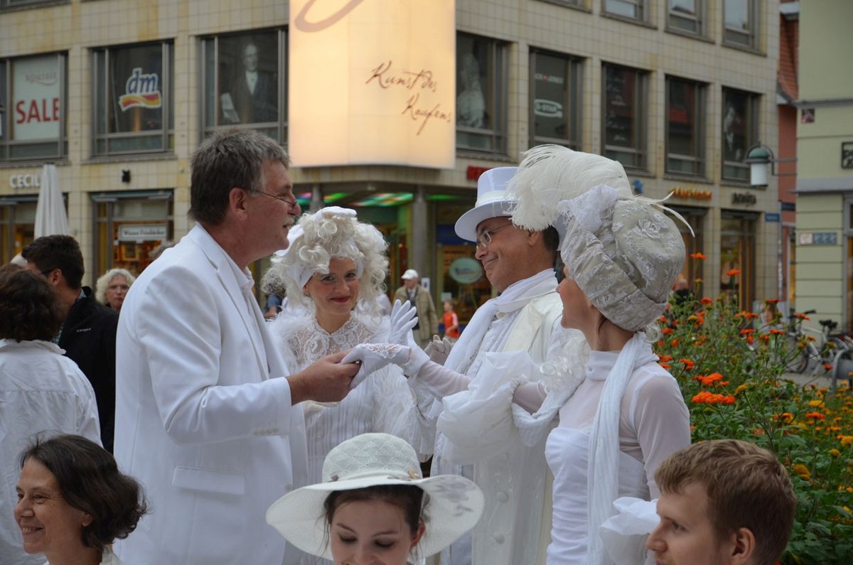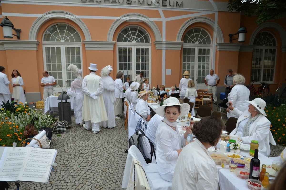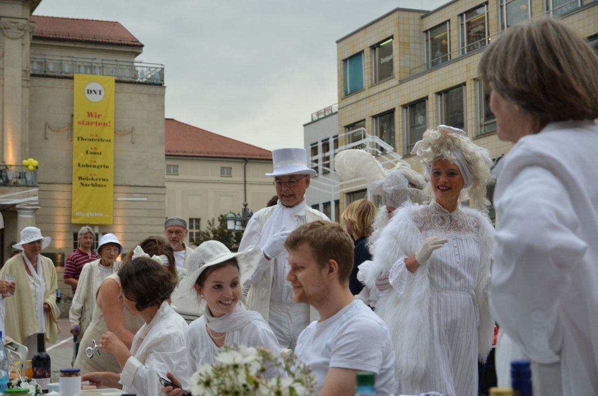 Diner blanc am 31.8.2013 02.09.2013 1. Teil der Bilderserie (Fotos: Roland Vandreike)Regen konnte weißem Abend in Weimar nichts anhaben... Zurück