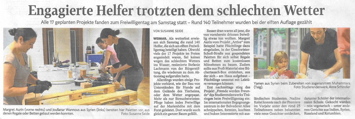 10 Jahre lang hatten die Aktiven des Weimarer Freiwilligentages Glück mit dem Wetter. In Jahr 11 öffnete der Himmel ausnahmsweise seine Pforten und testete die Hilfsbereitschaft der angemeldeten Freiwilligen unter neuen, regnerischen Bedingungen. Allein 10 der ursprünglich 17 angebotenen Mitmach-Projekte waren draußen geplant.