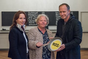„Damit haben wir bereits ein Viertel des Betrags zusammen, mit dem der Kinder- und Jugendfonds den Ferienpass jedes Jahr unterstützt“ freuen sich Doris Elfert und Katrin Katzung von der Weimarer Bürgerstiftung, als ihnen Hasko Weber den bereits überwiesenen Erlös zum Fototermin noch einmal symbolisch übergibt.