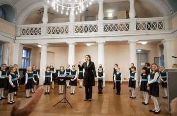Musikalisch umrahmt wurden die Reden u.a. von einem Beitrag der Nachwuchschöre, die mit Gesang und kleinen Choreografien den Abend eröffneten. Der preisgekrönte tschechische Gast-Kinderchor Motýli aus dem mährischen Šumperk überbrachte mit böhmischen Klängen und mährischen Volksweisen musikalische Geburtstagswünsche, gefolgt vom Jugendkammerchor der schola cantorum sowie dem Mädchenchor. Einen weiteren Höhepunkt bildete der Auftritt des mehrfach ausgezeichneten ensemble «voix claires», einem Quartett junger ehemaliger schola-Sängerinnen, die bereits einen Publikumspreis in Japan verbuchen konnten.