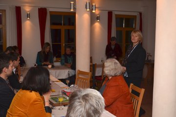 Regina Lang (Stiftungsratsvorsitzende) und Doris Elfert (Vorstandsvorsitzende) berichteten über die Aktivitäten der Stiftung, deren Entwicklung 2013 und die Aussichten für 2014. Viola Ehrhardt vom Nachbarschaftshilfeprojekt "Weimars Gute Nachbarn".
