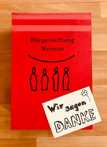 Phantastisch! Andreas und Gabriele baten die 30 Gäste ihrer Silberhochzeit statt Geschenken um Spenden für die Bürgerstiftung Weimar. Im Bauch unserer schicken Spendenbox befand sich am Ende des Abends ein wahrlich stattlicher Betrag, der nun den Projekten der Bürgerstiftung zu Gute kommen wird. Wir danken den beiden Jubilaren und allen Spendern aufs Herzlichste!