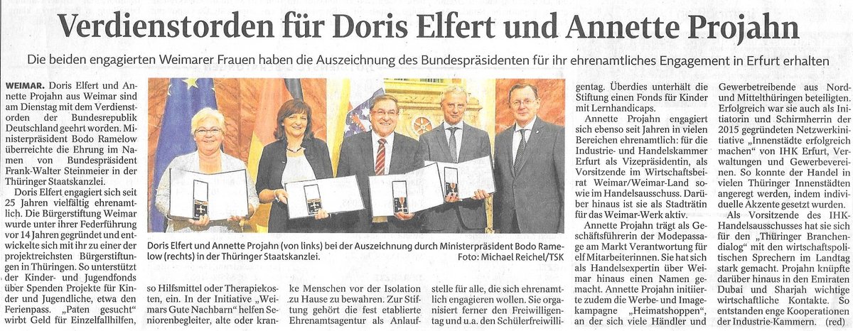 Die beiden engagierten Weimarer Frauen haben die Auszeichnung des Bundespräsidenten für ihr ehrenamtliches Engagement in Erfurt erhalten.