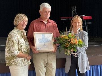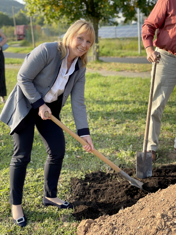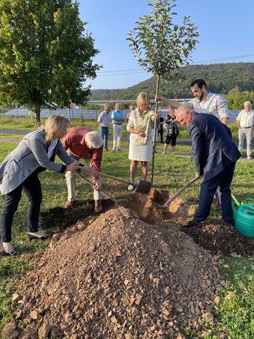Die erste Baumpflanzung erfolgte am Tag der Festveranstaltung auf dem Gelände der Festhalle. Preisträger Stephan Domann und seine Laudatorin Katrin Katzung griffen beherzt zum Spaten und übergaben den Apfelbaum seiner neuen Heimat, auf dass er in Zukunft viele symbolische Früchte des Engagements trage.