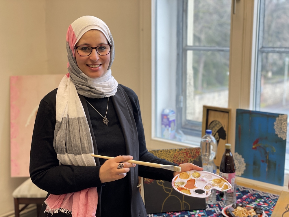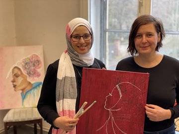 Den Schwerpunkt illustriere ich gerne mit dem Fokus auf den interkulturellen Austausch und die gesellschaftliche Integration arabischer/islamischer Frauen in Deutschland.“ (Selbstbeschreibung der Künstlerin)