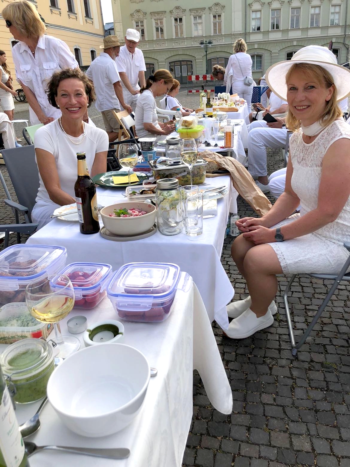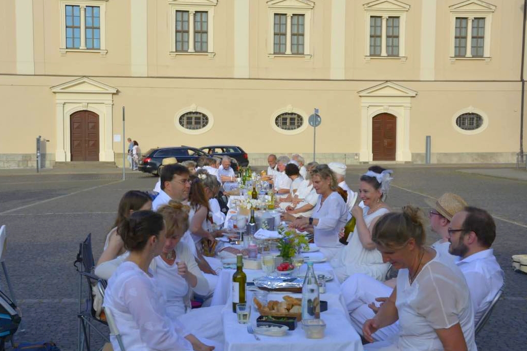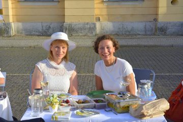Der Platz der Demokratie wurde für das diesjährige Picknick in Weiß gemeinsam mit den Grünen Wahlerwandschaften erwählt. An der weißen Tafel gab es nicht nur kulinarische Genüsse, sondern auch akustische des Duos "La Bella Bestia", hinter dem sich Katja Rudloff und Ralf Siedhoff verbergen. Ein gelungener Abend mit netten Tafelnden und bei bester Witterung, ganz in der Tradition des Diner en blanc.