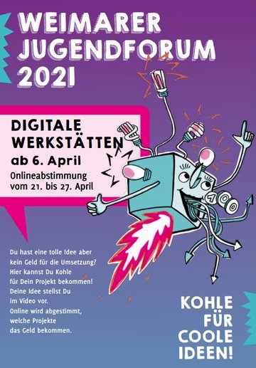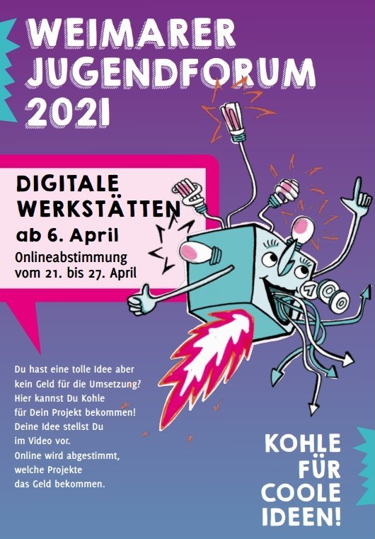 Macht mit bei der diesjährigen Abstimmung des Weimarer Jugendforums. Maximal 3000 Euro können Projekte in diesem Jahr wieder aus dem Jugendforum erhalten.