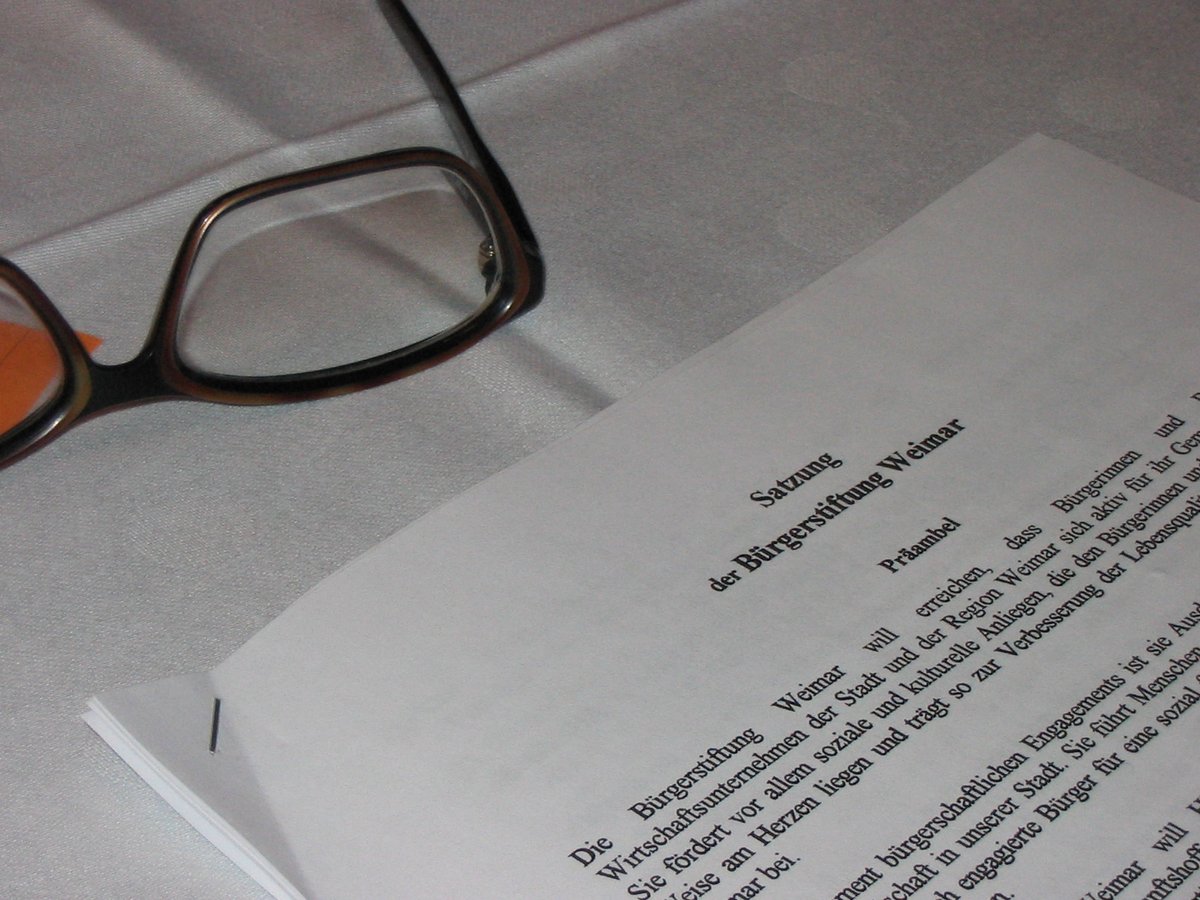 26 Stifter hoben am 24.1.04 im Rathaus die Bürgerstiftung Weimar aus der Taufe und ermutigen seit dem auch andere unter dem Motto "Spuren in die Zukunft legen", sich wirkungsvoll für ihre Stadt und ihre Menschen einzusetzen.