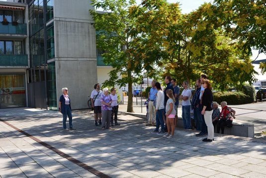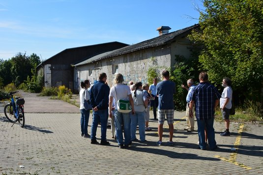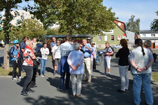 Bei schönstem Spätsommerwetter versammelten sich am Sonntag, den 15.9.19, die 22 „Spaziergänger“ auf dem Platz der ehemaligen Viehauktionshalle. Nach der Begrüßung durch die Vorstandsvorsitzende der Bürgerstiftung Weimar, Doris Elfert und dem amtierenden Ortsteilbürgermeister, Olaf Merzenich, übernahm Peter Zeh die Führung.