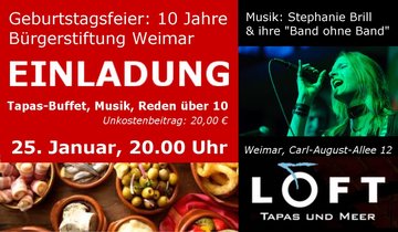 Wir feiern im Loft, Carl-August-Allee 12, Unkostenbeitrag: 20,00 €, Voranmeldung bis 16.1. unter stiften@buergerstiftung-weimar.de