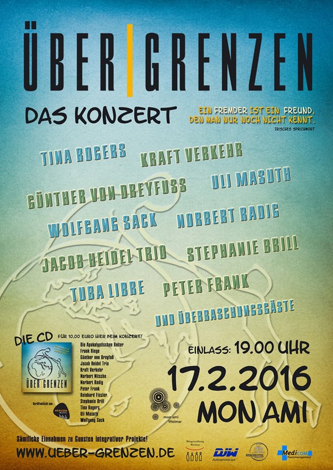"Ein Fremder ist ein Freund, den man nur noch nicht kennt". Benefiz-Konzert zu Gunsten integrativer Projekte der Flüchtlingshilfe. Mittwoch, 17.2., 19.00 Uhr, Mon Ami // Eintritt 5,00 Euro oder CD für 10,00 Euro